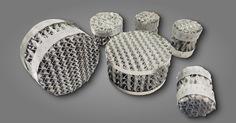 KPT also offers specially designed Structured Lab Packing for R&D trials and pilot unit distillation. These are efficient packing with very low pressure drop 0.1 to 0.4 mbar/stage, suits low liquid load 0.05 m3/m2h, higher surface region, and NTSM.